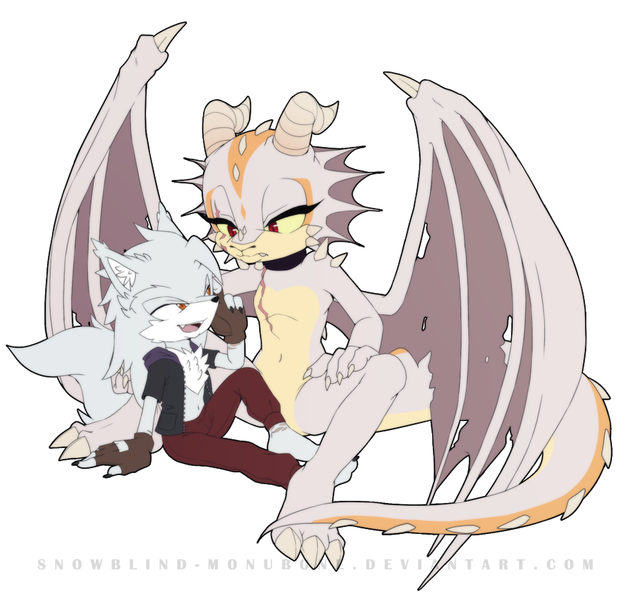 Featuring his character Pryde and my character Revy. It appears like Pryde is giving Revy some advice, as he pokes his head with his finger.