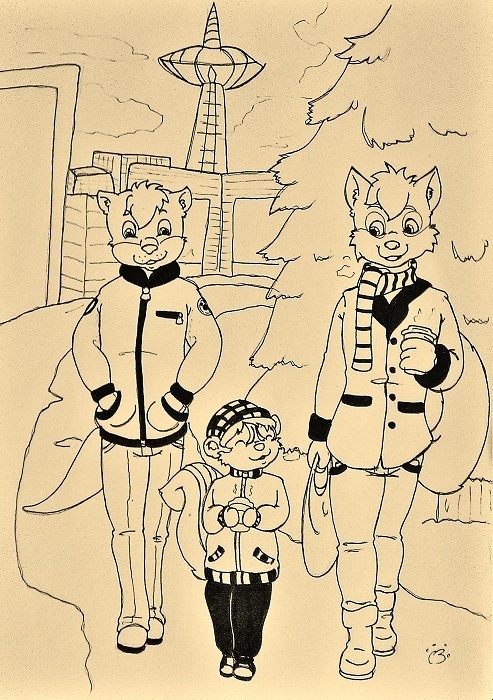 Jessie, Travis and Kaden, giving the shorter boy hot coco.