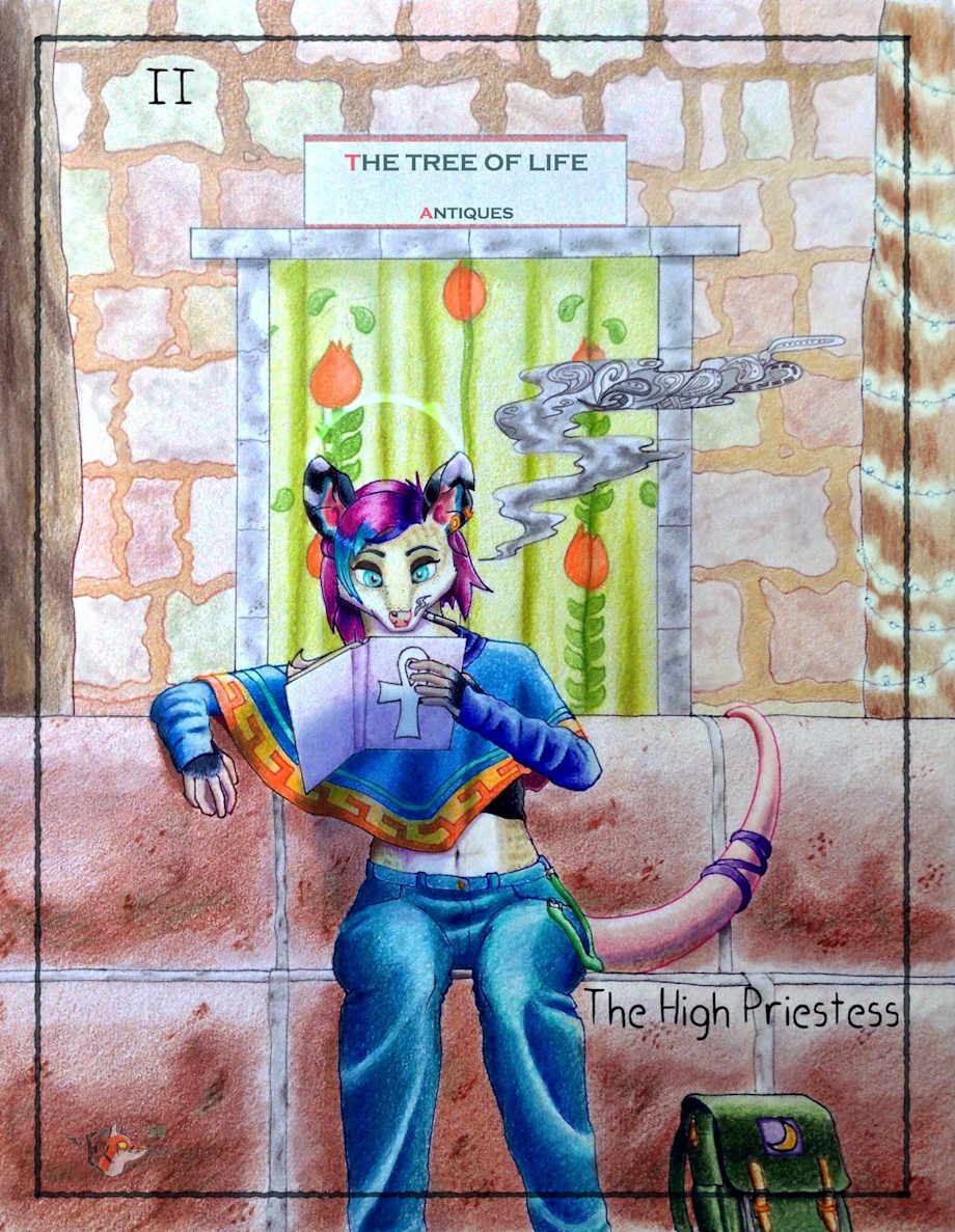 some stuff I did inspired in tarot cards, Daphne perfectly fits as the High Priestess; I tried to add as many elements of the original card in this piece as I could.