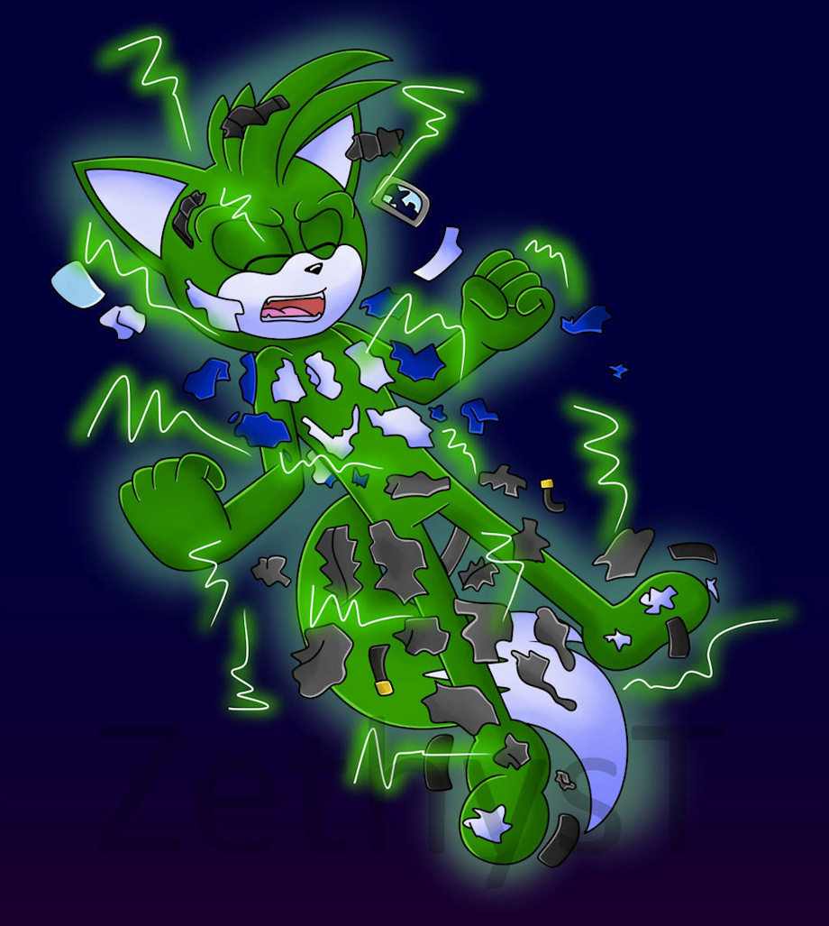 Kingston unleashing his new power which releases very strong statics covering him to destroy all his clothes during his super transformation, but it also electrocutes him, maybe he powered up too strong or too much because it's hard to control for him. Even he is getting use to it, he doesn't do it all the time unless necessary because it very hurts (it hurts more when he is naked) and he can be tired easily after he turned back to normal.