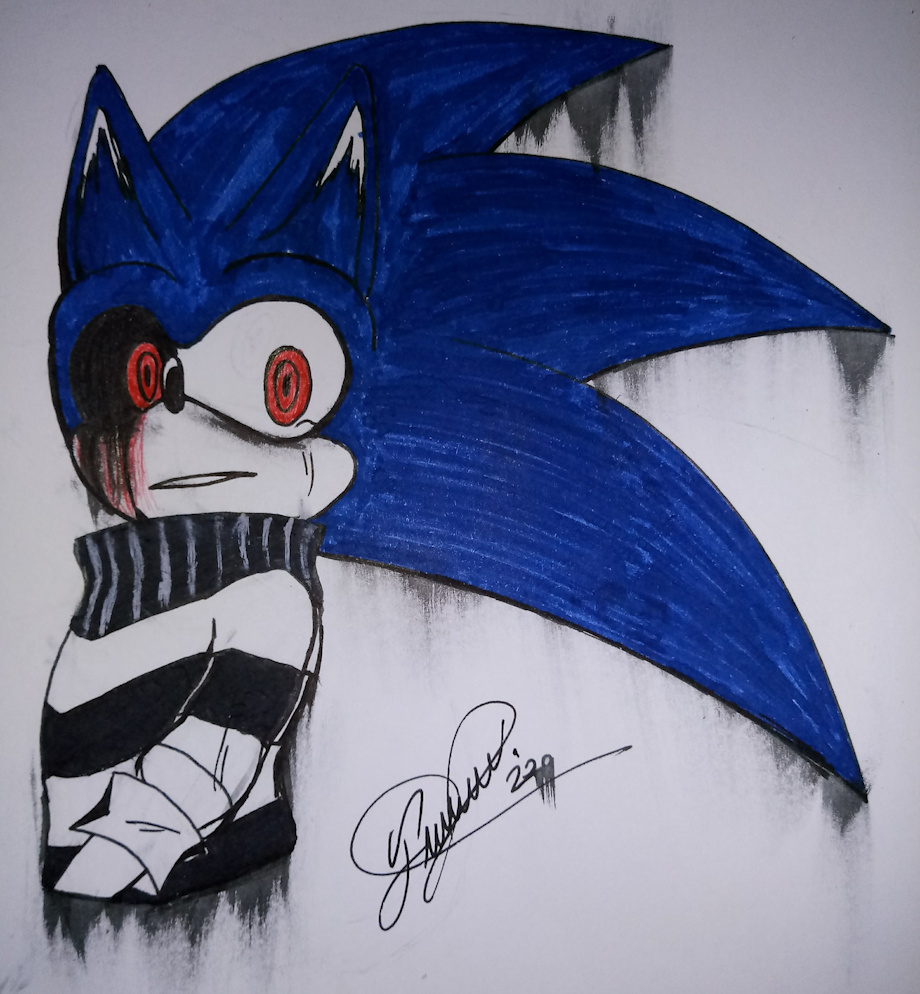 This is an au created with my friend. in this au sonic is villain and can go exe whenever he want (yes he can control exe) but his back story is little bit sad so ı draw this.