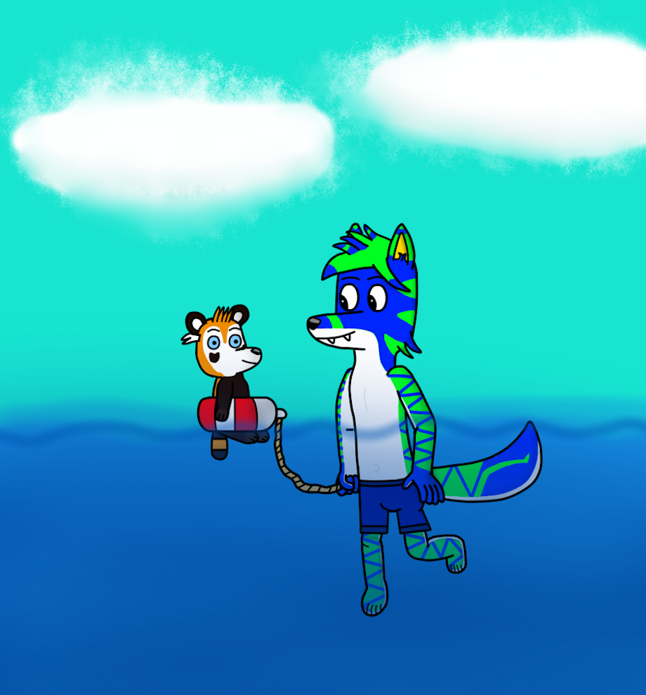 or as we know him as croc and bert <3 so any way croc made me this awesome drawing <3 me taking a swim with my rp in the ocean good thing i putted a lifesaver around my rp or els Nemo could have fun with it XS but any way thx croc <3<3<3 hugs!!!