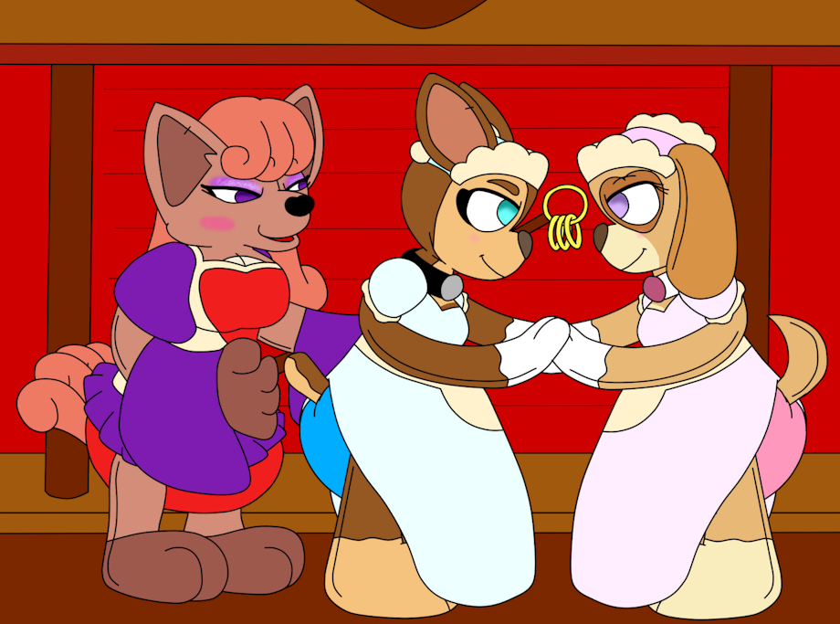 Today, I give you Cherie and Senna being wed; in their old lives, these would constantly tease with a 'will they or won't they' behavior, which can understandably be at least a LITTLE excused as they were puppies. Now, however, as maids to the Master, they have the maturity to embrace their affection for each other, and thanks to Pepper, are able to exchange vows and pledge themselves to each other.