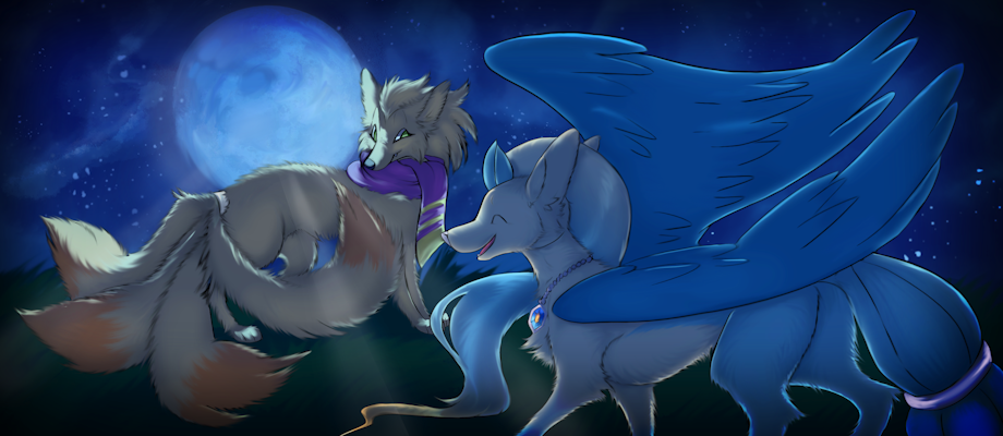 Gosh. How and why do people come up with special days for kinks, animals or Pokemon? And why is there no Liepard day? I don't know, but apparently I missed Ninetales day. But Litarath did not forget about it. And for this occasion she used her Ninetales/Articuno hybrid Artailea and made the Mew kitty use her transformation powers to turn into a Ninetales. And with the help, skill and time of the lovely Dizzymilky it turned into this great piece. This is definitely a comfy looking amount of fluff right here and there! Thank you to both of you <3