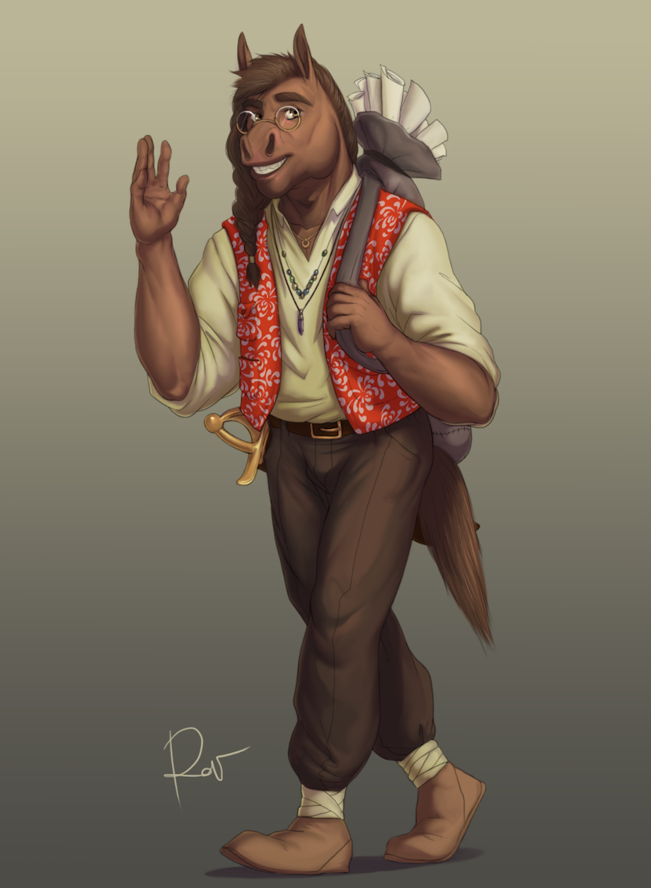 Yet another character design commission for MasterDraco! This is supposedly a roaming cartographer and merchant you might be crossing in the game! He's not a fighter, but he knows how to survive this world!