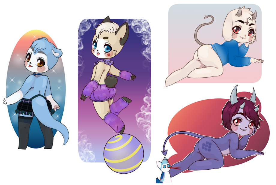 They can be SFW, NSFW, clothed (complex clothing or accessories might add to the base cost, ask if you're unsure!)