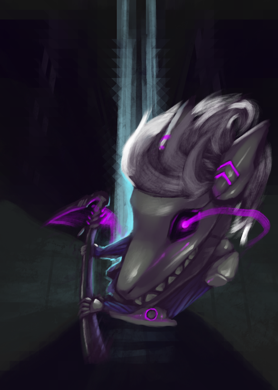Another commission from IcyFoxy! That is one.... uh.... "happy" cyber sharkgirl! She's.... rushing toward you with hugs! ... pay no mind to the scythe. Or the teeth.