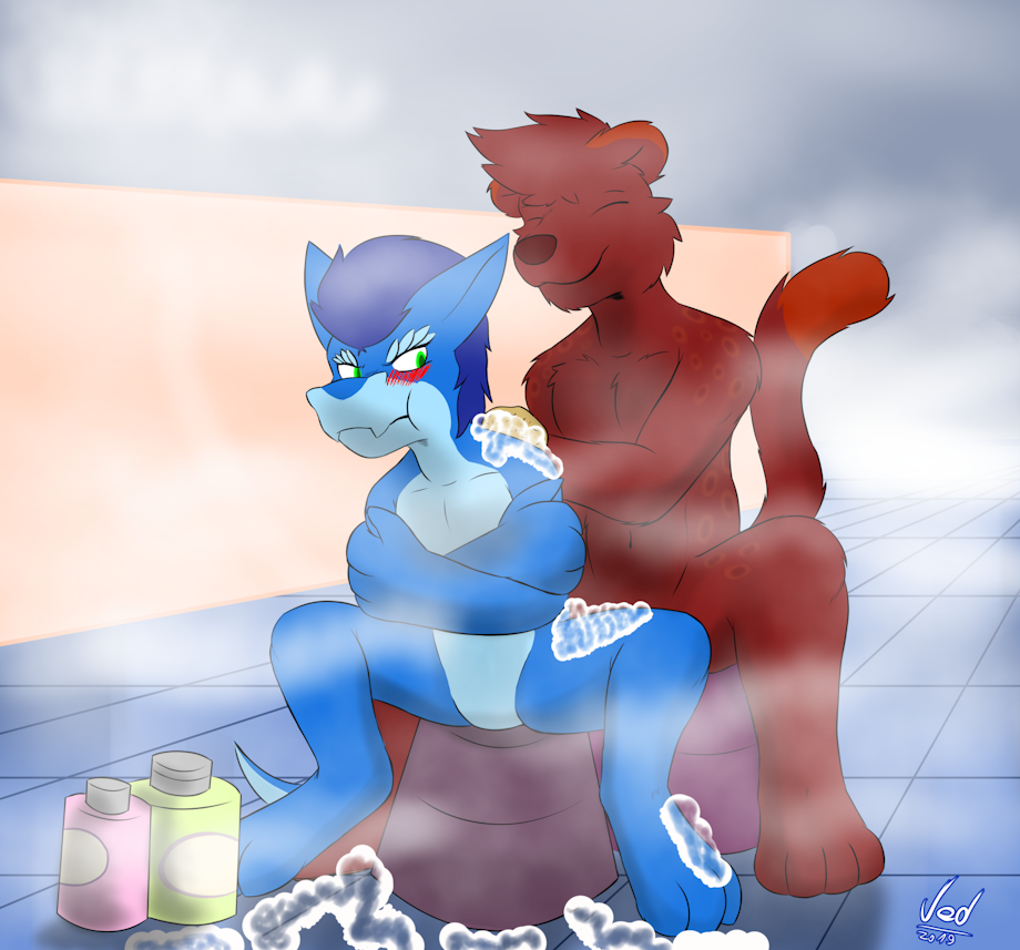 "I told you a bath will help to relax..." "Shut up...you missed a spot..."