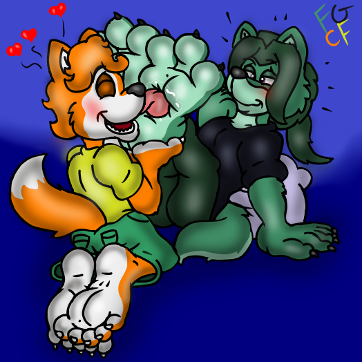Coolfruits aka TheRedSkunk draws the most adorable chubby squishy looking feet :D <3. I absolutely love this pic :3. I'm licking Blake's sexy chubby feet, and he's all blushy and cute^^.
