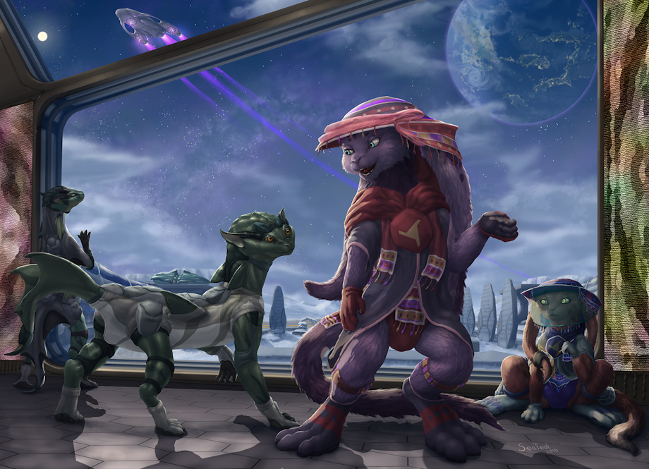 The Shunamir (the furry creatures on the pic) welcome the Hesiarr visitors to a station on the frozen moon of their home world, later planning a visit to the planet Hush itself.