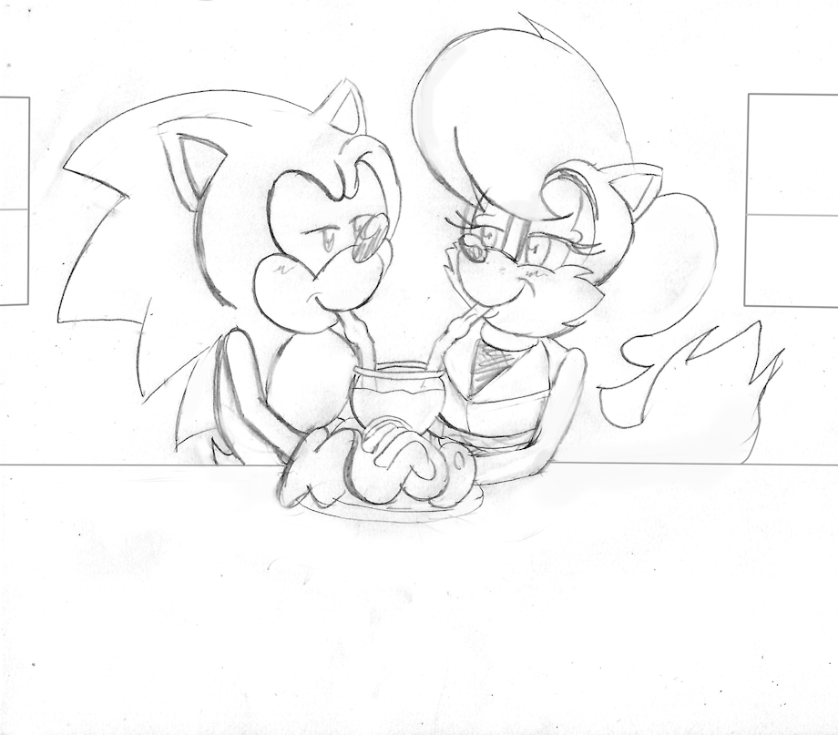 Sonic and Sally at dinner sharing a milkshake ^_^