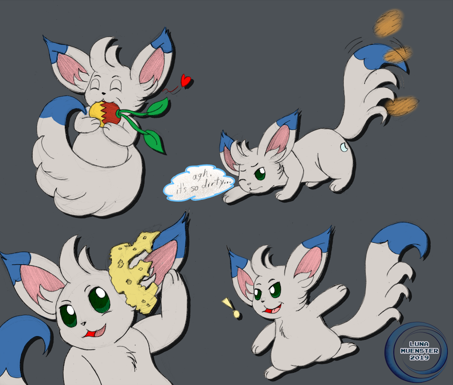 This weekend i hadn't commissions to do, so i'd took my time to draw a some ideas for my new Pokemon OC, Minccino!