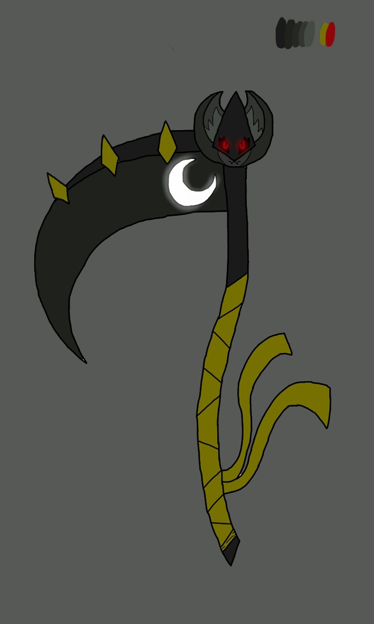 Esta es mi guadaña oc, el creador de la guadaña original es: CJsux, originalmente estaba haciendo su guadaña original pero un poco modificado, los personajes que me gustan son: lunala y nightmare de fnaf 4 y resulto es esa forma.