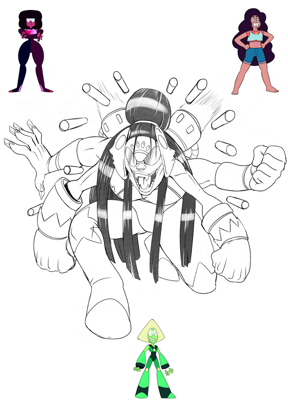 Sketch Stream Commission for Whitewhiskey of a fusion between Garnet, Stevonie, and Peridot