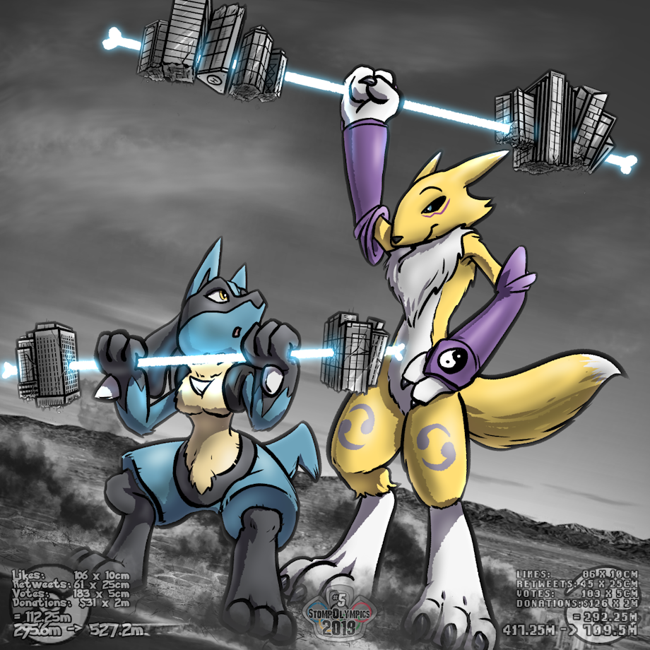 With over two hundred meters now over his competition, Renamon effortlessly wins this event, able to lift far more than Lucario can manage!