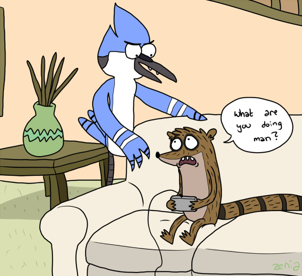 For someone on DA who wanted to see "Vampire Mordecai about to bite either Margaret or Rigby."