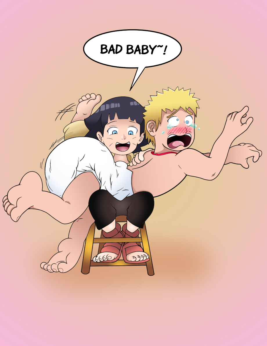 “OOF! W-Wait! Please! Th-Think about th-AAAAAH!” Naruto screamed and his eyes crossed as the pain shot into his butt through the diaper when Himawari immediately got to spanking it.
