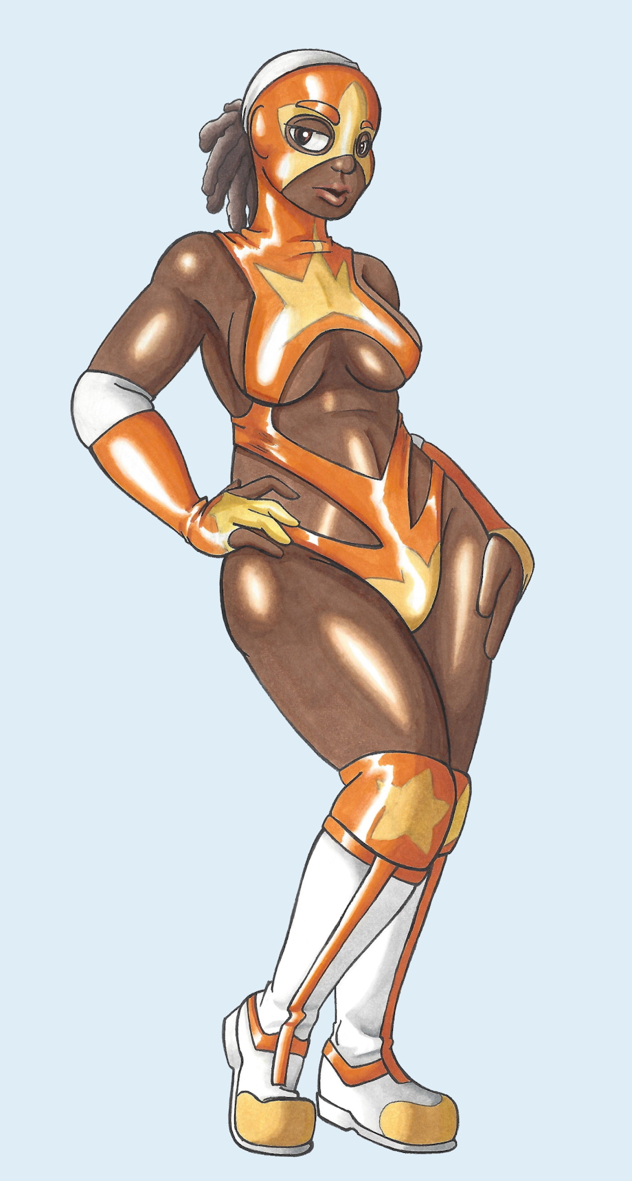 Now for a human character, and doubling as a way to reuse an older design, here's Starsha, ready to step, or sit on some faces, as one does in SUDO.
