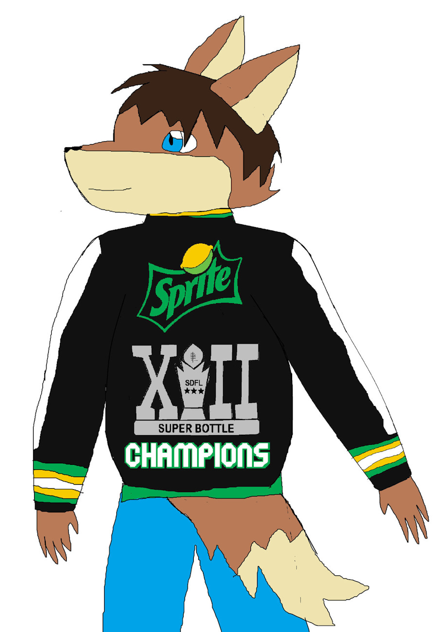 Jason Rockman The MegaFox Receives his Prize for rooting for Sprite for this Super Bottle to win himself a Sprite Champions Jacket.