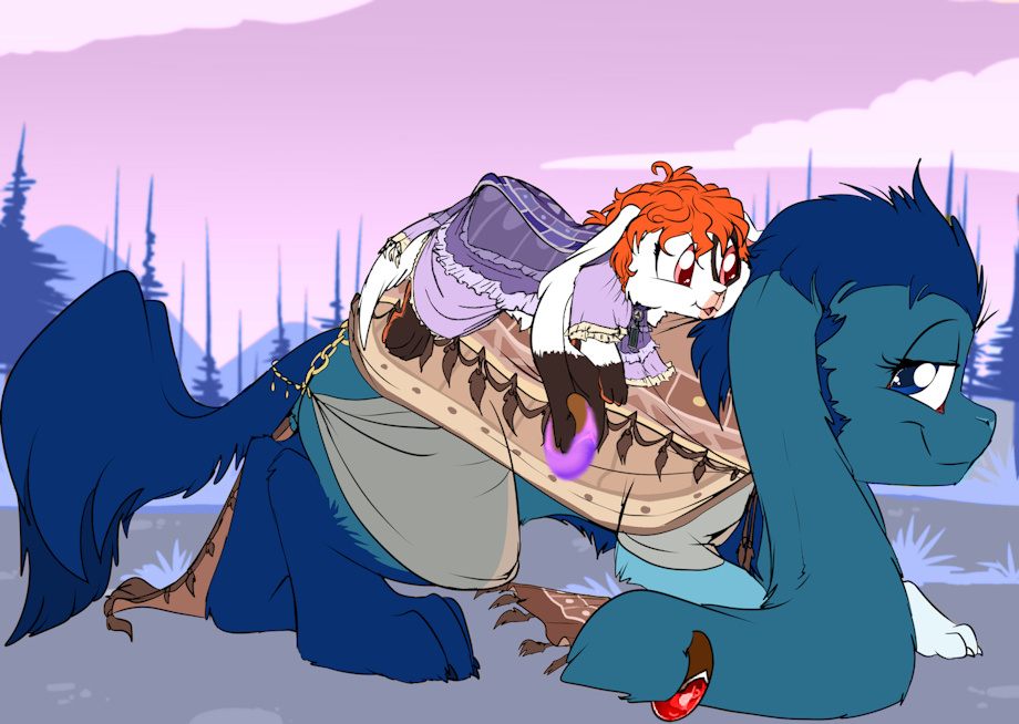 He has a nice shawl on his back. I bet it's comfy to ride on.