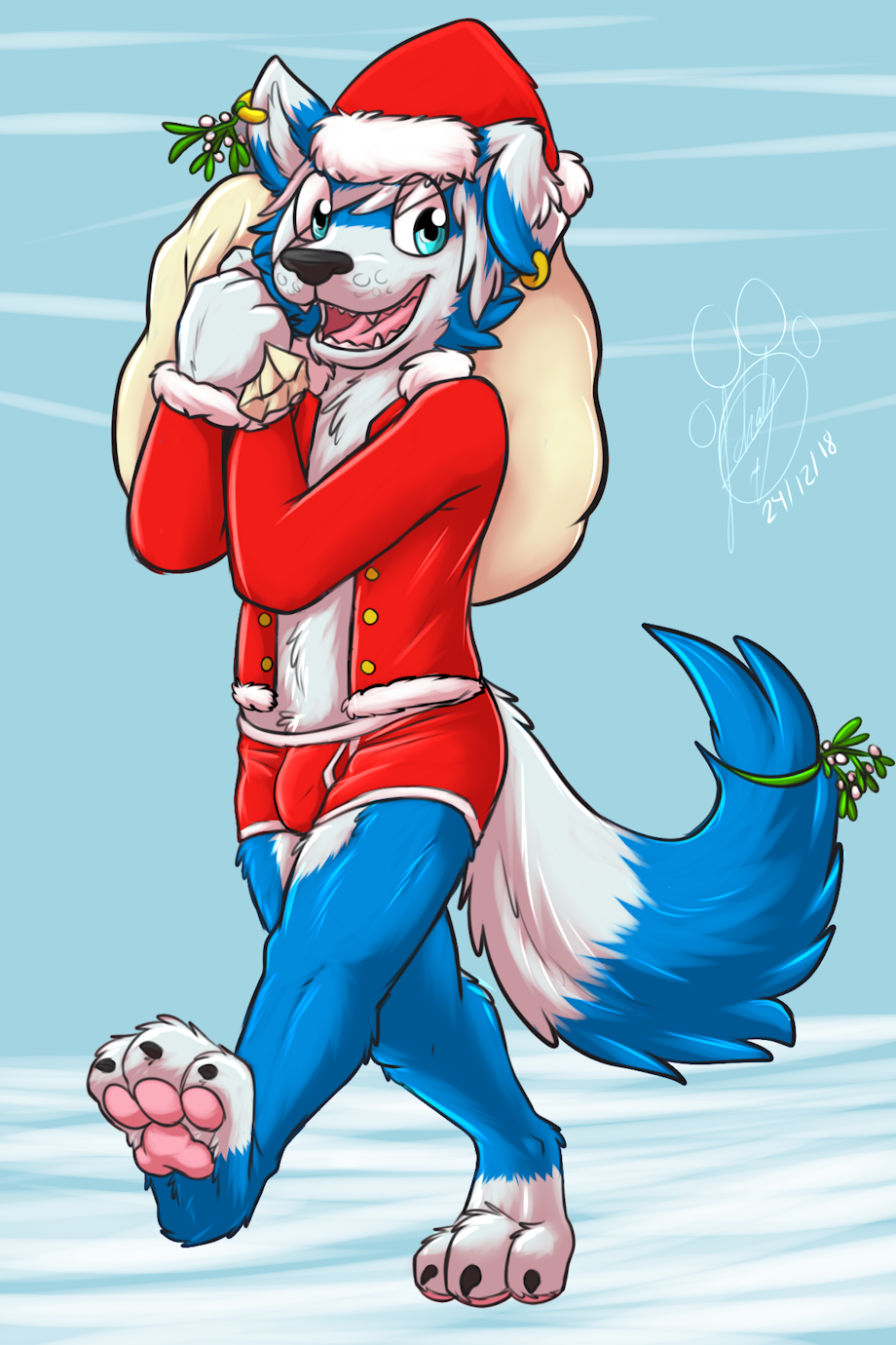 Well what a cutie he is i love his santa outfit i love those red undies. I am really living your work