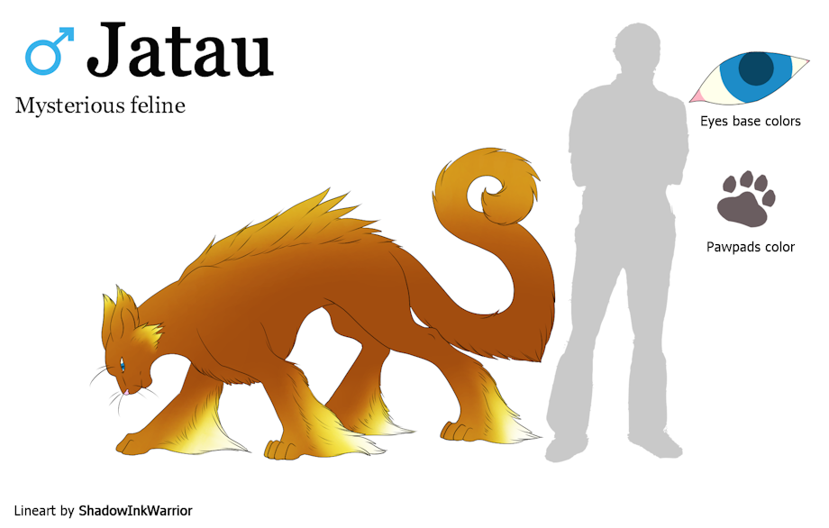 His origin is unknown. As a cub he was found and raised by a lone leopard male in the hot land of grasslands and scarce forest patches. When Jatau reached adulthood, his father told him that it was the time to live apart, and that only in that he could learn the way of his people. They agreed on meeting a one year later, but that was not destined to happen. Jatau doesn't know what exactly happened, only that he was struck by something one night and that then he felt trapped between life and death, with strange lights and sounds surrounding him, he didn't know how much time passed while he was in that state, it felt like eternity, but when at last he came to his senses everything around was in smoke and fire. So he ran as fast as he could, and when he got out of breath and finally stopped, he was already far from the fire, and more so, he found himself in a completely foreign land. He didn't know how and what carried him here, but one thing was for sure, he didn't have a slightest clue how to get back to his homeland.