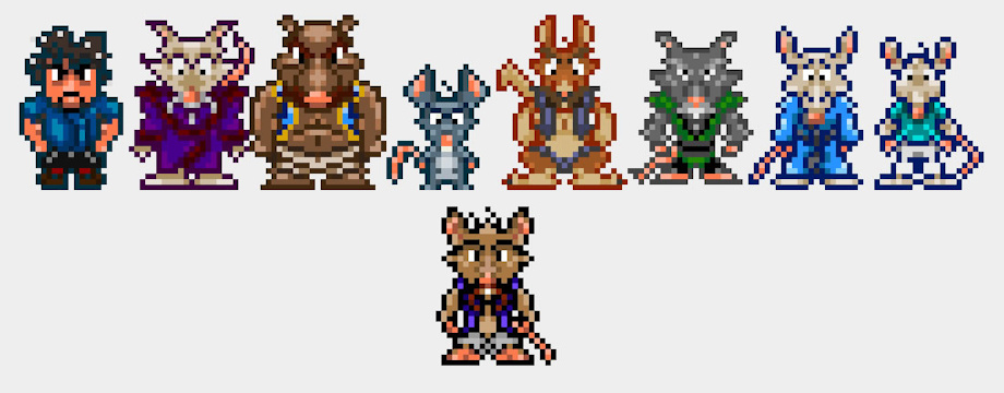 So, after a few years of chipping away at making a RPG through RPG Maker VX Ace, one of my bigger hurdles looks to have been surpassed. These are sprite models of the characters for it. Came out super nice. The cast is almost all furry but there are some humans in it.