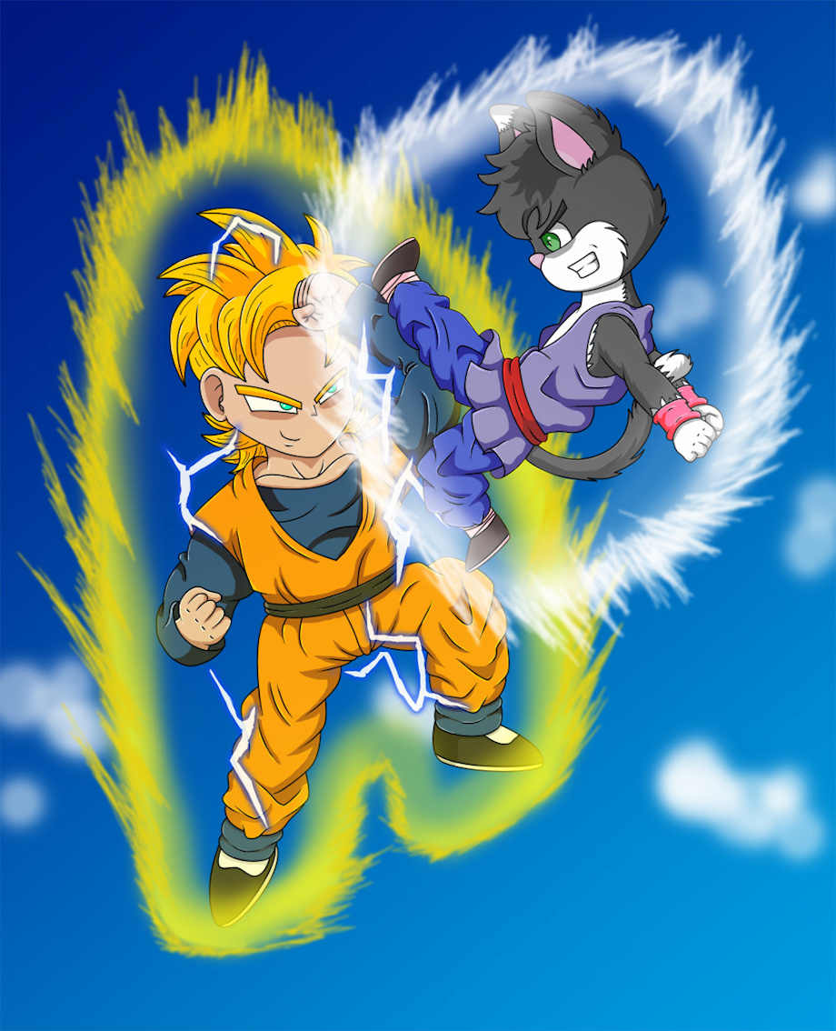 This is a continuation of https://inkbunny.net/s/1735396 being Z-Fighter Storm. Goten now had permission to train Storm and this picture is from one of their training sessions. Looks like both of the boys are having a blast :)