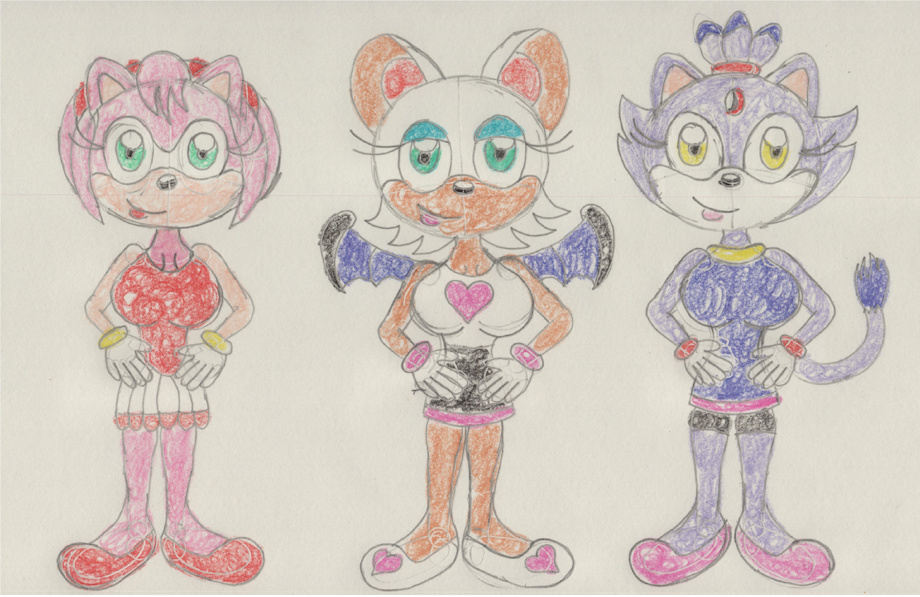 Upon hearing the announcement of Mario and Sonic at the Tokyo 2020 Olympic Games for the Nintendo Switch, I've decided to redraw an old favorite of mine featuring Amy Rose, Rouge the Bat, and Blaze the Cat in their gymnastics outfits.