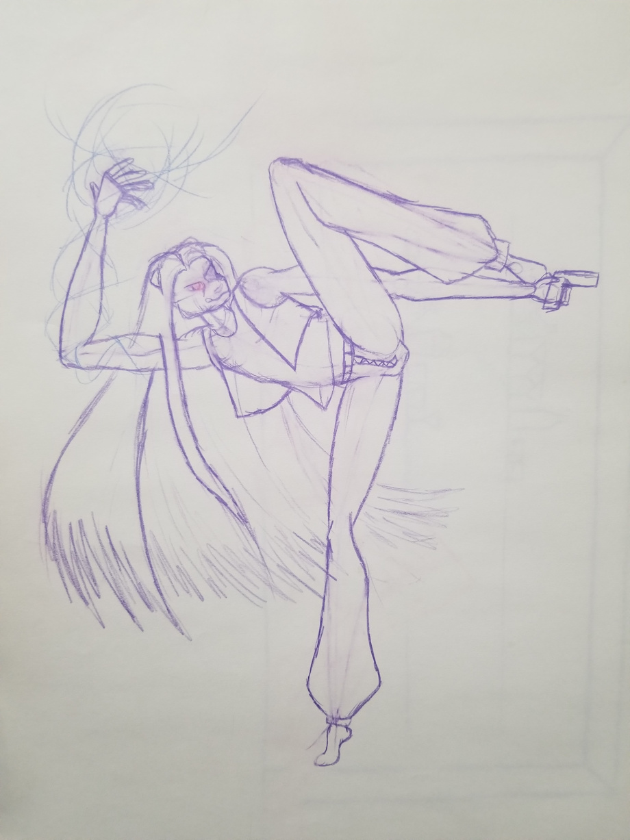 My very first character, Xero Black. I killed him off a few years back to become my current main, the hybrid Judah Vishas. That pose, and subsequently the length of his limbs, were based on a Bayonetta image.