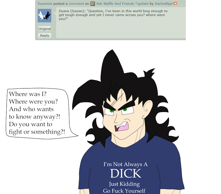 This question is from Dysartist on DA. Sorry for the wait, I haven't really been drawing lately as my attention went into my writings. That, and I don't exactly rush to do these answers like I used to. I have to go where my inspiration takes me sometimes.