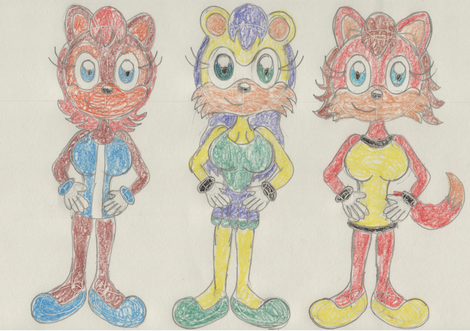 To keep with the hype for Mario and Sonic at the Tokyo 2020 Olympic Games, I've decided to redraw an old pic back from 2015 featuring Sally Acorn, Mina Mongoose, and Fiona Fox wearing gym attire I made them.