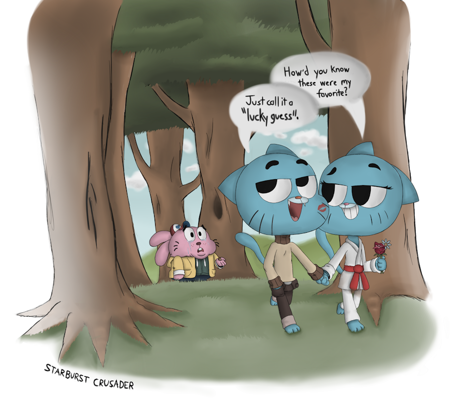 Gumball bets Richard that he could win his mother over as a kid, Richard retorting 'I'd like to see you try' in response... this caused Gumball to take it as a literal challenge, and after going back in time (by unconventional means) to the exact point that his parents met as kids and charming the socks off of his young mother, his father indeed 'sees him try'.