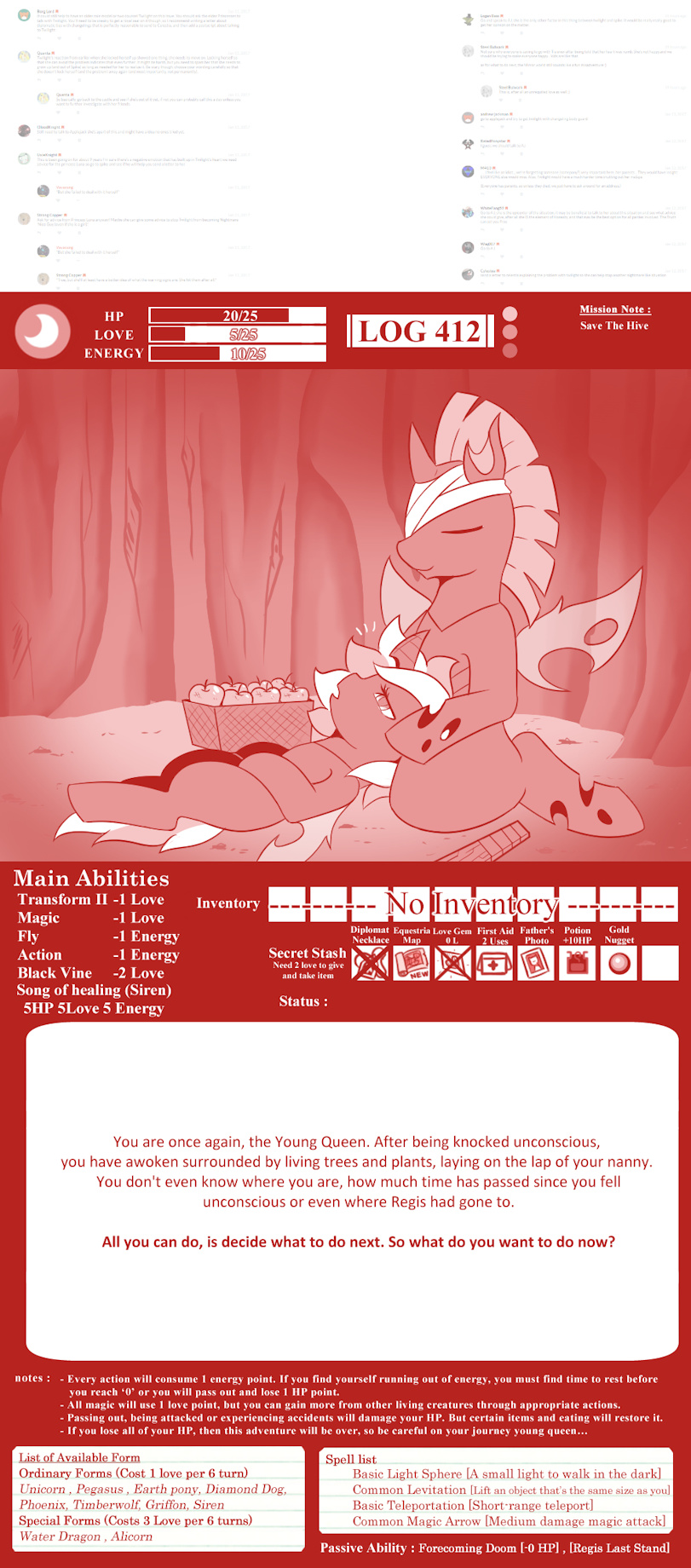 If you don't know what is "Comment Driven Story" See this "Moonstuck" as the example woonastuck.tumblr.com/page/187