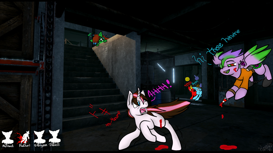 so this is sourgummy and friends making there first time showing in killer game tho i feel sorry for the friends because sourgummy got to be the killer and well when your a crazy nightmare Pony that loves killing with a candy cane shiv then this is what you get