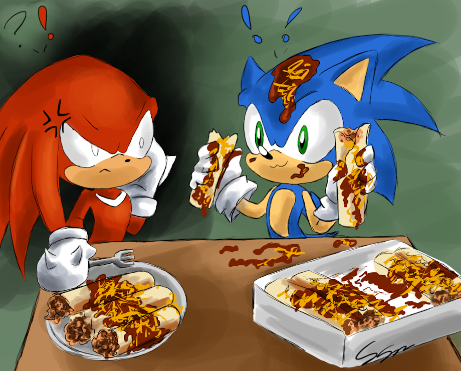 Knuckles spent all his time making enchiladas. actually, he probably just got takeout. but that's not the point.