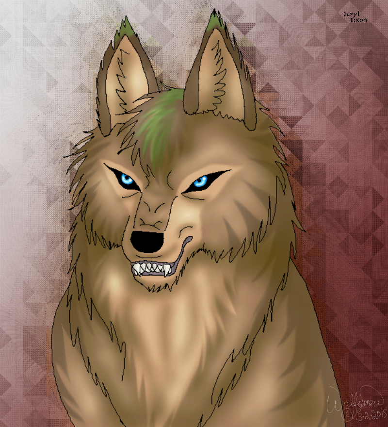 From the Walking Dead in wolf form. He looks fussy. Don't try to pet him. Lol.