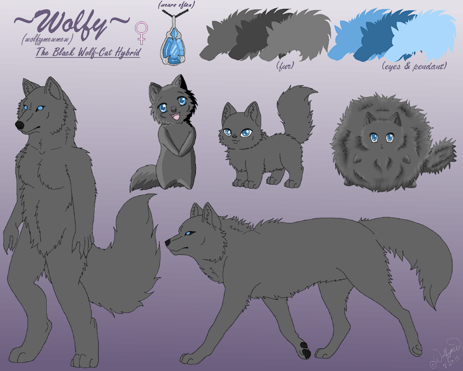 I am Wolfy, a pure black, blue-eyed, wolf cat.