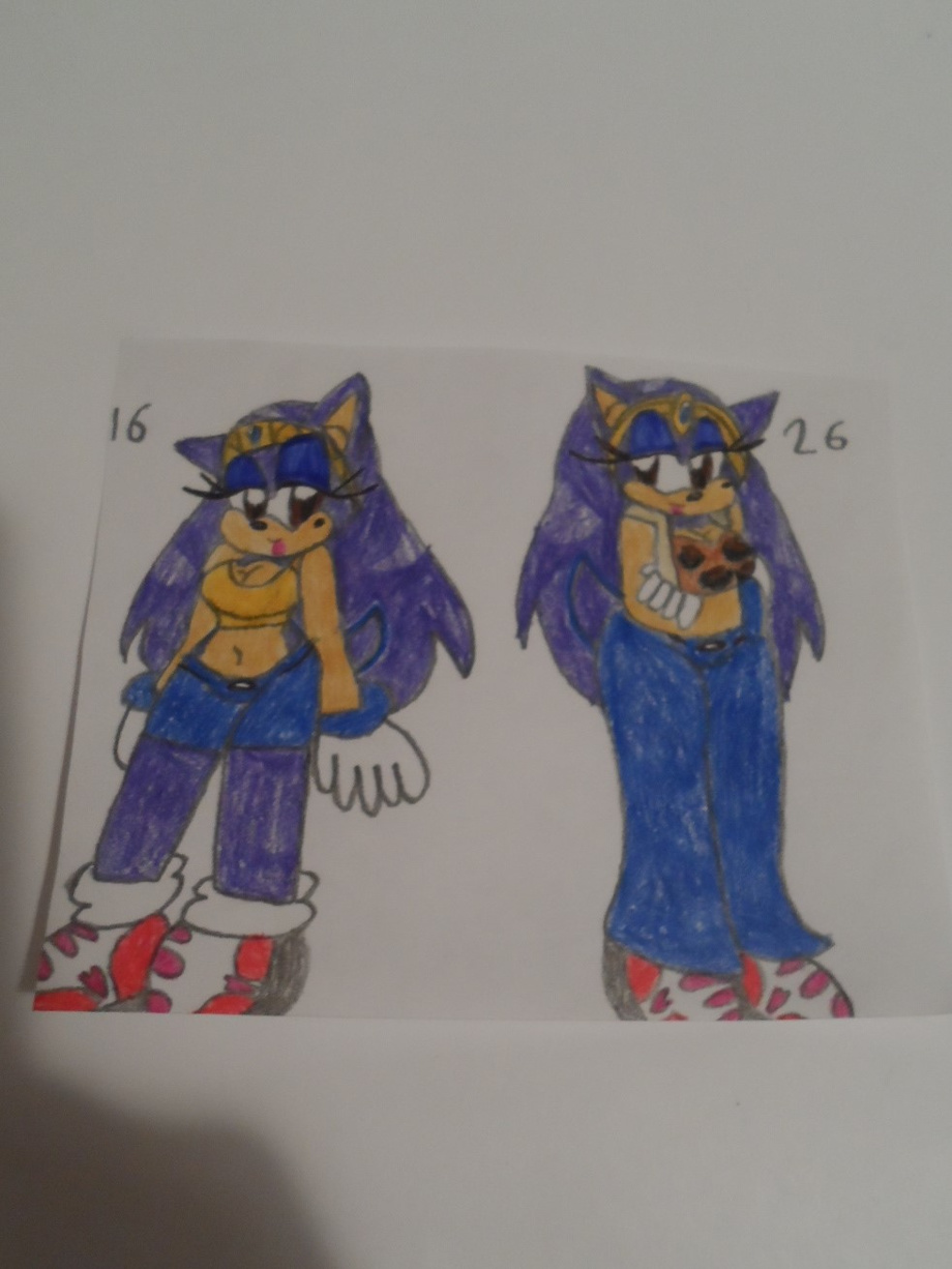 Yeah for those who don't know in my head-canon my char Shannon in the "canon" years of Sonic is the same age as Knuckles and Espio and is 10 years older than Cream and Charmy and the doodle on the left is how she looked at age 16. Now the right doodle is how she looks at age 26 which is how old I am right now, 10 years later.