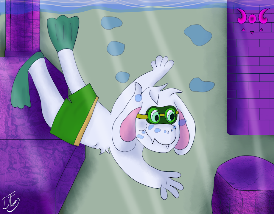 Asriel likes to free dive! He discovered an unknown submerged area of the Ruins... maybe he'll find something important and abandoned in there...