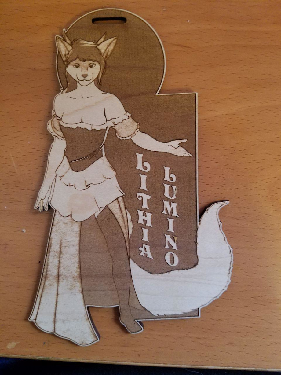 Wood badge commission for Lithia Lumino. I'm now open for wood commission to be available for pickup at BLFC!