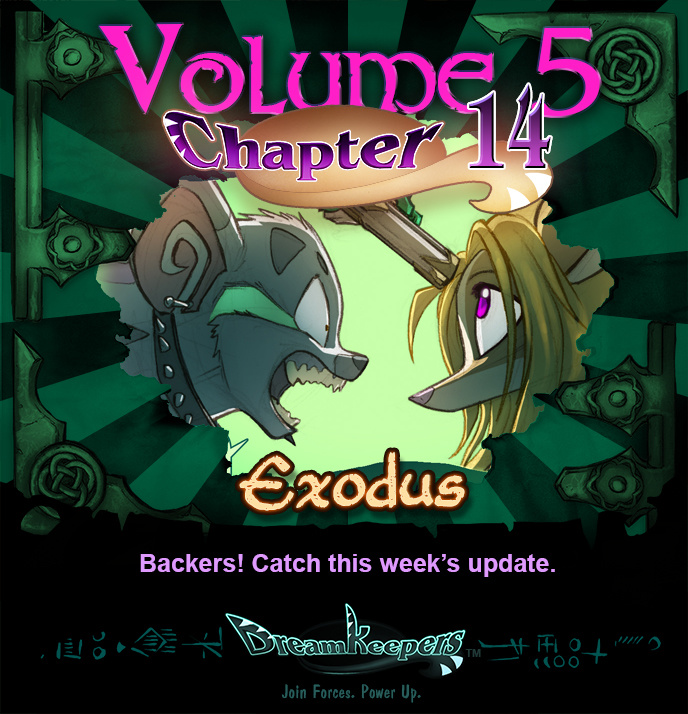Dreamkeepers Volume 5 Chapter 14, action heats up. $1-a-month backers, thank you for keeping us working! Read on Patreon or your platform of choice: