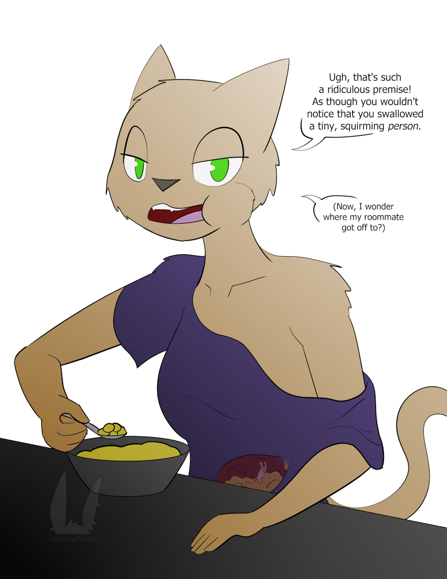 Anon asked: "How do you feel about unaware vore? As in, the pred swallows the prey on complete accident and fails to notice he's down there, mistaking him for a bit meal and spending the week digesting him"