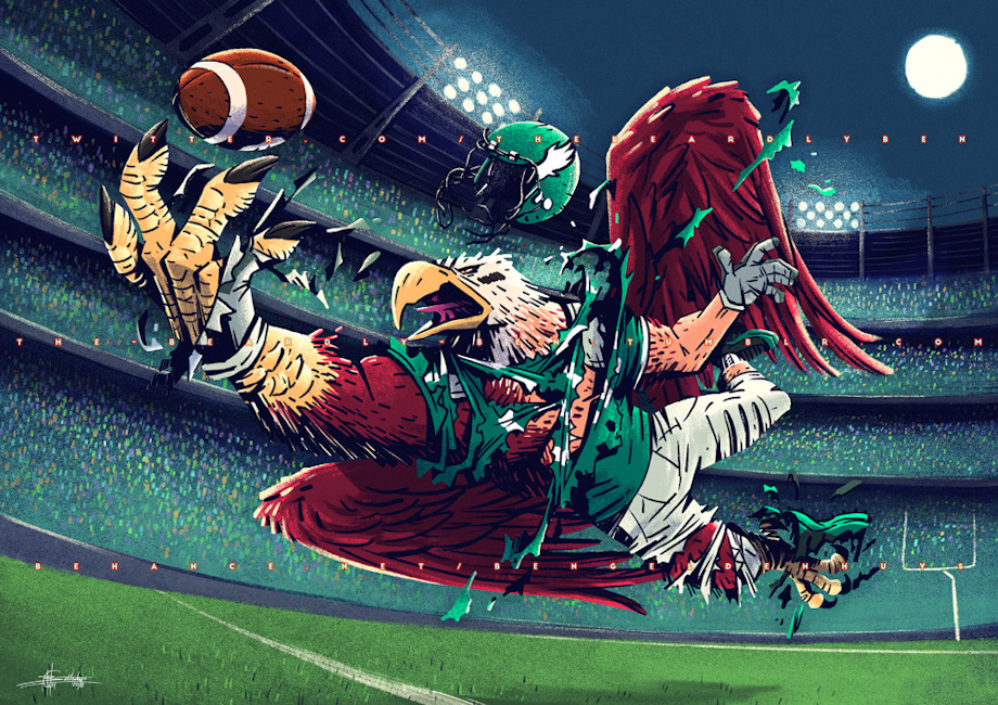 An absolutely beautiful scene here, depicting Pheagle transforming into his bald eagle form during a full moon, while attempting to catch a football thrown to him.