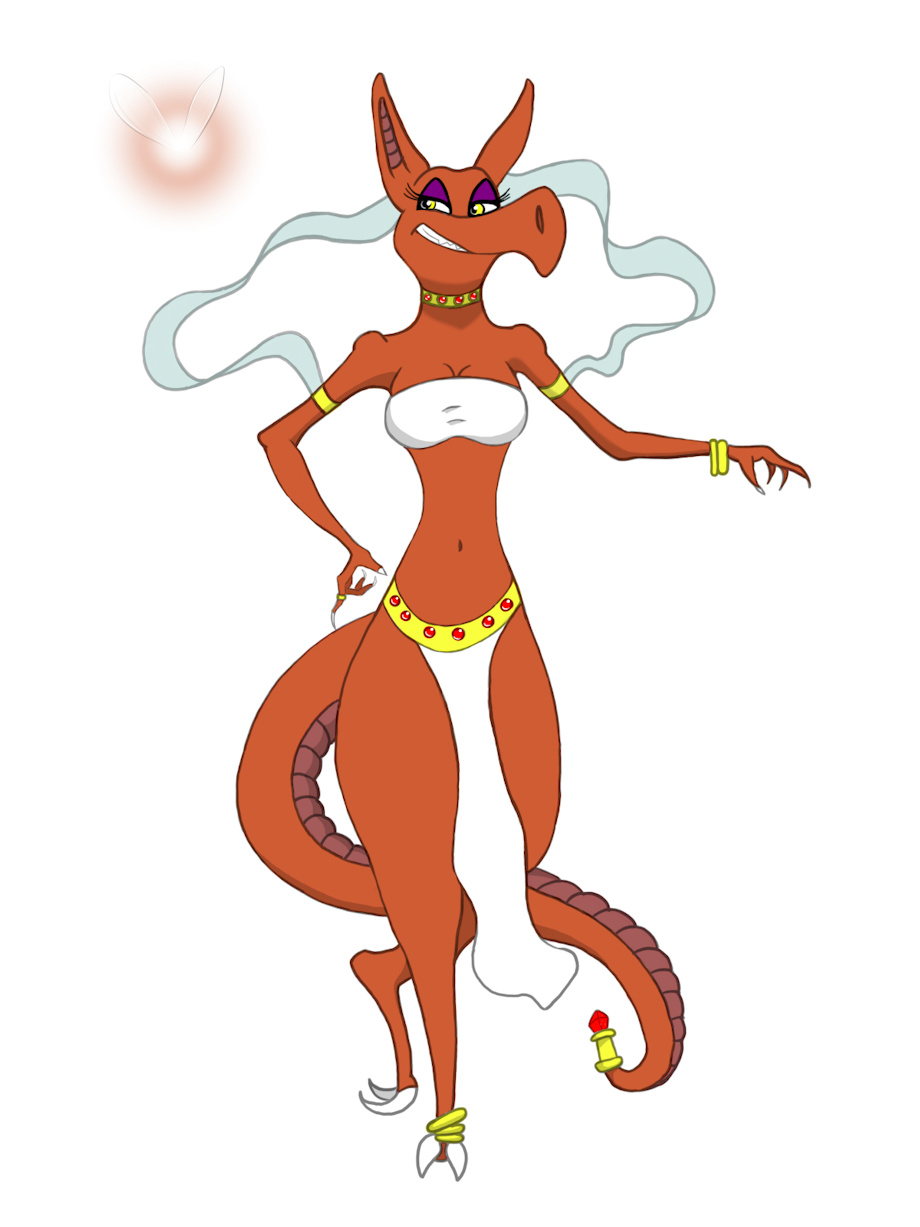 Helena's body is carefully sculpted to have as much beauty and sex appeal as she possibly can. She takes great pride in her cleavage, perfect scales, and her very fine hips.