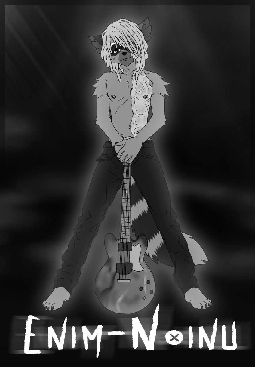 Same as the last uploaded awesomeness, only this time in color and without a band logo. Say hi to the hybrid, kids! *waves at the shep-coon* X3