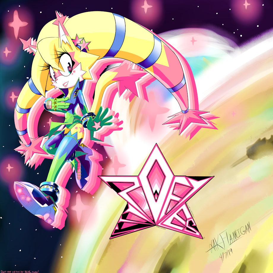 SWIFT KICK!: [Type of attack: Kinetic] Zoey lifts her leg in any direction (In the image I chose up) and the end of her foot a Bright 5 spiked star is summoned, the star stays attached to the tip of her foot until she releases. once she swings, she releases the star off into the direction she kicks. (Again in the image, I chose down), the impact of the star is not the same as, Star Light Impact, however the damage is just as bad... In this attack the Star is used more as a weight, rather then an energy blast. She can also use this attack as a counter weight/ Balance during certain circumstances.