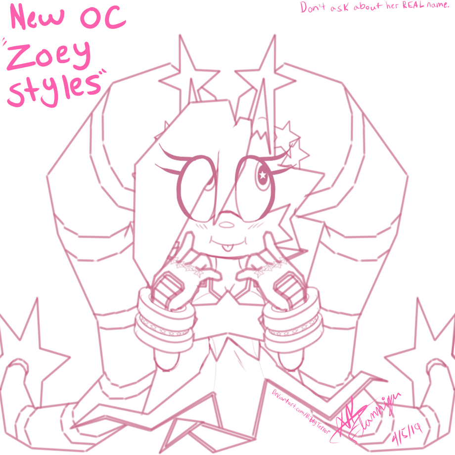 She's a cosmic feline who travels the stars, saving the universe on a daily basis, with her Side Kick (Who isn't present in the image) a pair of Hands, she named, Handy. Handy is some sort of Phenomena, a pair of disembodied hands, that think and feel on their own. Zoey doesn't mind this whoever, it's always nice to have an extra pair of hands.