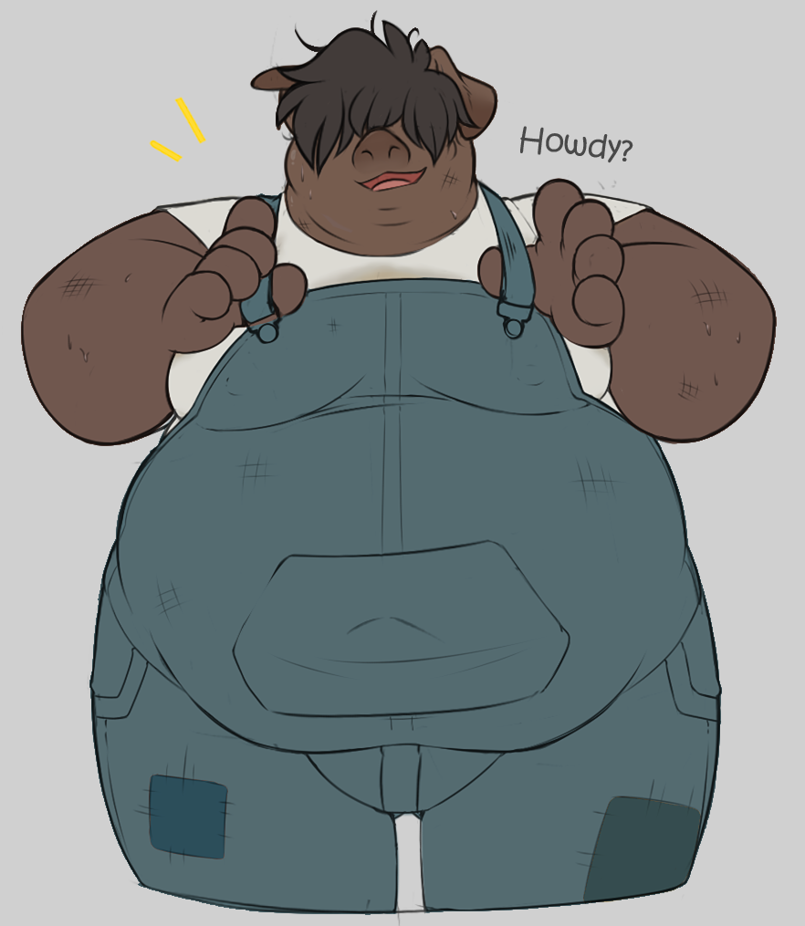 Passing by a country-side farm land, you see a big cute farmer boy in a patched overalls working, he sees you and walks toward you to give a greeting, it becomes harder to hide your blushing growing redder as he gets closer and closer each step.