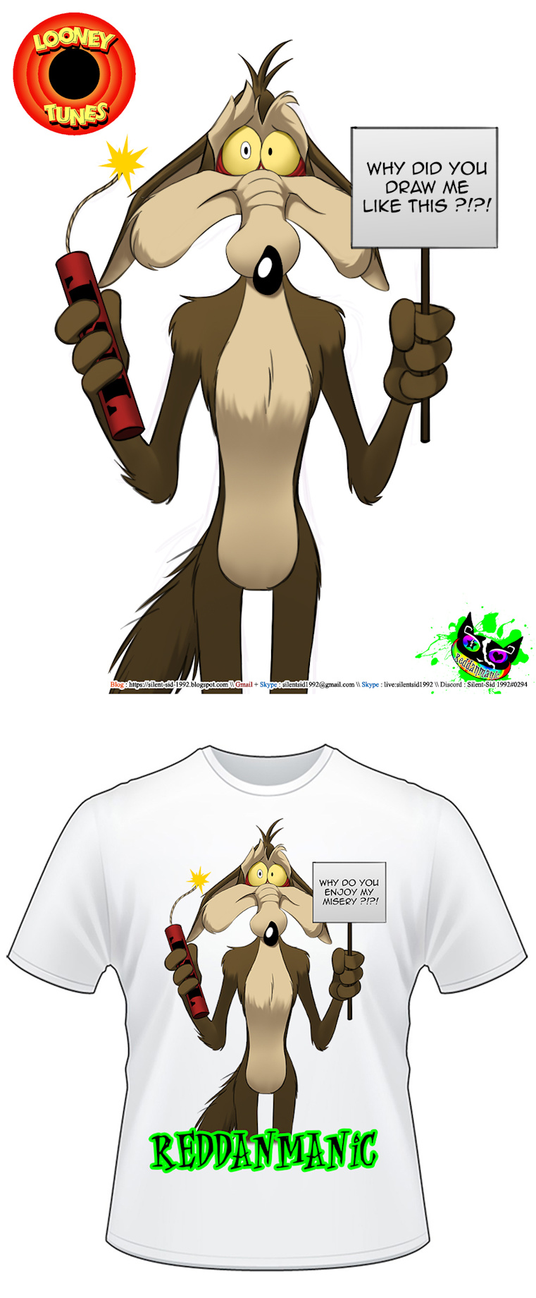 a drawing of Wile E. Coyote from The Looney Tunes , and another example of me mimicing other art styles , I clearly can't do it perfectly , but I can make it look similar.